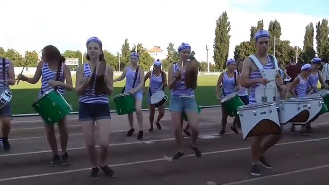 Оркестр барабанщиков "Юнга" из Новороссийска в перерыве финального матча на Кубок России по регби. 11.08.2016г., стадион "Труд".