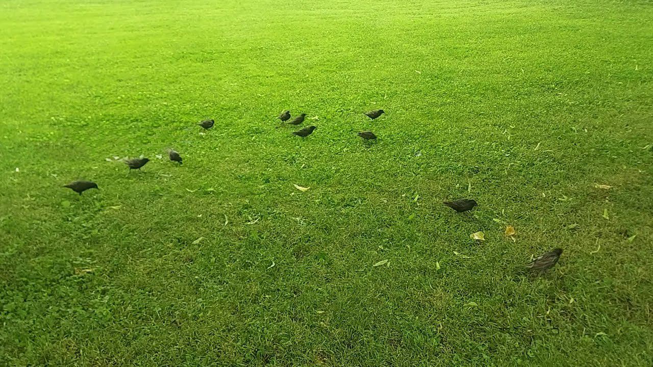 Скворцы в Александровском саду на траве (30.06.23)