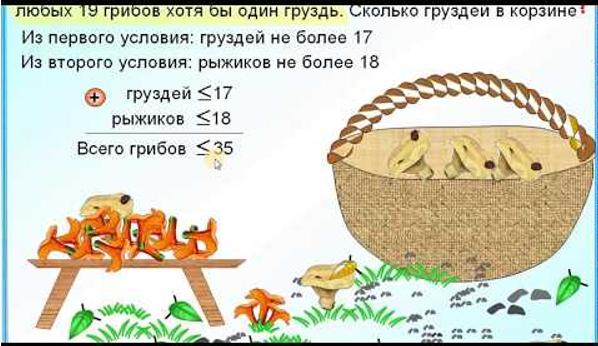 В корзине лежат 35 грибов: рыжики и грузди. Известно, что среди любых 18 грибов имеется хотя бы один рыжик, а среди любых 19 грибов хотя бы один груздь. Сколько груздей в корзине?