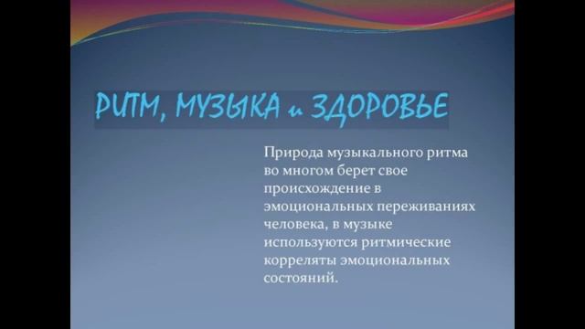 "Сила музыки заключается в ритмах физического тела. Ходьба, бег, дыхание, неустанное биение пульса формируют глубинный ритм, на котором основа мир звуков... Когда движение повторяется много раз, рождается мелодия, слова или любая другая тональная деятельность" (Дон Кэмпбелл, звукотерапевт) В течение часа слушатели окунутся в атмосферу различных звуков и узнают о воздействии музыки, ее ритмической и мелодической основ на психику человека. В этом видео: - Эмоциональные состояния и соматическое здоровье; - Синхронизация ритмов музыки и организма как важная составляющая адаптации человека в различных ситуациях; - Выбор и/или создание музыки для поддержки и исцеления; - Примитивная музыкальная экспрессия как метод работы с различными эмоциональными состояния. Эксперт: Буренкова Елена Валентиновна - кандидат психологических наук - доцент кафедры танцевально-двигательной психотерапии Института Практической Психологии (ИППиП, Москва) - сертифицированный специалист в области музыкотерапии, арт-терапии, куклотерапии