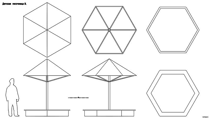 Детская песочница B. Чертёж. Childrens sandbox B. Drawings.