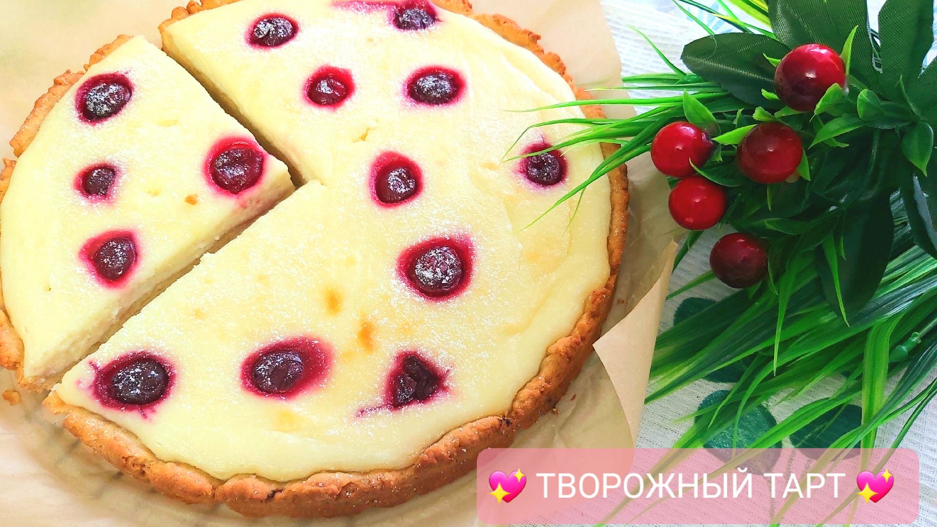 Творожный тарт с вишней ??_открытый пирог с творожной начинкой?