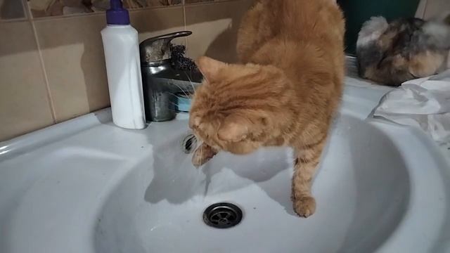 Котик играет с водой