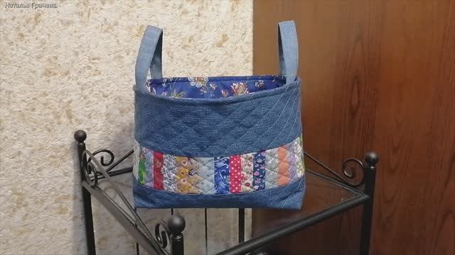 Текстильная корзина из старых джинсов своими руками.
