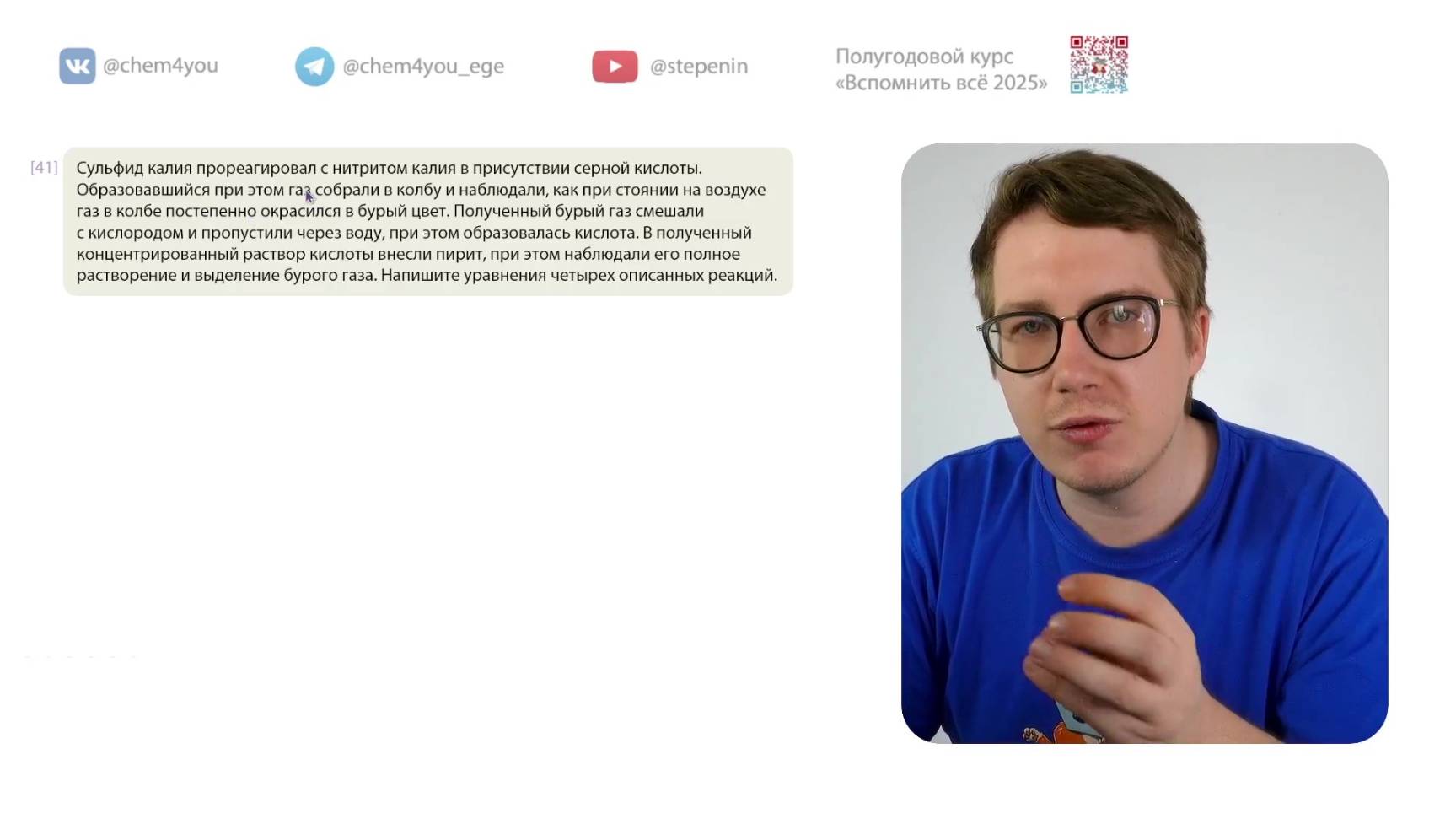 📗 Учебник по органической химии. Углубленный уровень, 10 класс, ФГОС: https://stepenin.ru/tasks/ebook-10 📑 Много тестов для подготовки к ЕГЭ по химии: 1. Задания по неорганике (больше 2000): https://stepenin.ru/tasks/common 2. Вся база заданий (больше 6000): https://stepenin.ru/tasks 💯🧠 Ждем всех на наших курсах подготовки к ЕГЭ: 👉 Курс подготовки к ЕГЭ-2025 по химии для 11 классов: https://stepenin.ru/go/6u3araee 👉 Курс подготовки к ЕГЭ-2026 по химии для 10 классов: https://stepenin.ru/go/H45L7wZZ 📚 Рабочая тетрадь по органической химии: https://stepenin.ru/store/book/book-organic 📚 Книга «Тематические тесты» (500 страниц) : https://stepenin.ru/store/book/tests-bigbook 📚 Книга «40 вариантов к ЕГЭ-2025» (350 страниц): https://stepenin.ru/store/book/sbornik30 📚 Задача 33. Углеводороды: https://stepenin.ru/store/book/hydrocarbons-book ============================= 🧪 Подготовка к ЕГЭ по химии на самые высокие баллы на наших курсах: https://stepenin.ru/go/6u3araee Телефон Андрея Степенина: +7 926 625-73-33 📚 Много полезного образовательного контента на наших площадках: 🐈 ВК химия: https://vk.com/chem4you 🦭 ВК биология: https://vk.com/bio4you ✈️ Химическая тележка 11 класс: https://t.me/chem4you_ege ✈️ Химическая тележка 10 класс: https://t.me/stepenin10 ✈️ Биологическая тележка: https://t.me/bio4you