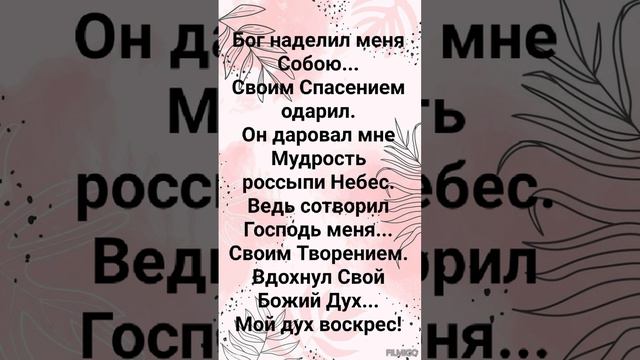 ХРИСТИАНСКИЕ ПЕСНИ ДЛЯ ХВАЛЫ И ПОКЛОНЕНИЯ ПРОСЛАВЛЕНИЯ ВООДУШЕВЛЕНИЯ #господь#музыка#христианская_музыка#музика#христианскиепесни#бог#христианскиестихи#любовь#христианство#стихи#песня#песни#иисус#иисусхристос#иисусмойбог#иисус_христос#иисусбог#иисусгосподь#хвалы_и_поклонения#хваление#хвала#прославление ВСЁ ДРЕВНЕЕ ПРОШЛО!" СЛОВА, МУЗЫКА: ЖАННА ВОЛКОВА-ВАРЛАМОВА Стихи Жанна Волкова(Варламова) Всё древнее прошло! Забыто!!! Сожжено оно - Огнём Святым с Небес! Пусть прах его уносит ветер! Сосуд очищен мой сиянием Небес. Припев: Господь - Бог мой! Моё Он Чудо! Иисус - Сокровище с Святых Небес! И этот дар получат даром люди... Кто этого желал и кто Его просил!!! Мой храм - Святой! В нём - Божья Сила! Вся Божья прелесть, красота Небес. И надо мной явилась Слава... С Небес Святых сошёл Поток чудес! Припев: Господь - Бог мой! Моё Он Чудо! Иисус - Сокровище с Святых Небес! И этот дар получат даром люди... Кто этого желал и кто Его просил!!! Мой храм - Святой! В нём - Божья Сила! Вся Божья прелесть, красота Небес. И надо мной явилась Слава... С Небес Святых сошёл Поток чудес! Припев: Господь - Бог мой! Моё Он Чудо! Иисус - Сокровище с Святых Небес! И этот дар получат даром люди... Кто этого желал и кто Его просил!!! Бог наделил меня Собою... Своим Спасением одарил. Он даровал мне Мудрость россыпи Небес. Ведь сотворил Господь меня... Своим Творением. Вдохнул Свой Божий Дух... Мой дух воскрес! Припев: Господь - Бог мой! Моё Он Чудо! Иисус - Сокровище с Святых Небес! И этот дар получат даром люди... Кто этого желал и кто Его просил!!! Он оживил меня! Теперь сияю!!! И даровал мне то, чего не ждал. Господь мне дал намного больше,.. О чём я даже не мечтал. Припев: Господь - Бог мой! Моё Он Чудо! Иисус - Сокровище с Святых Небес! И этот дар получат даром люди... Кто этого желал и кто Его просил!!! 01.08.2018 Жанна Волкова-Варламова