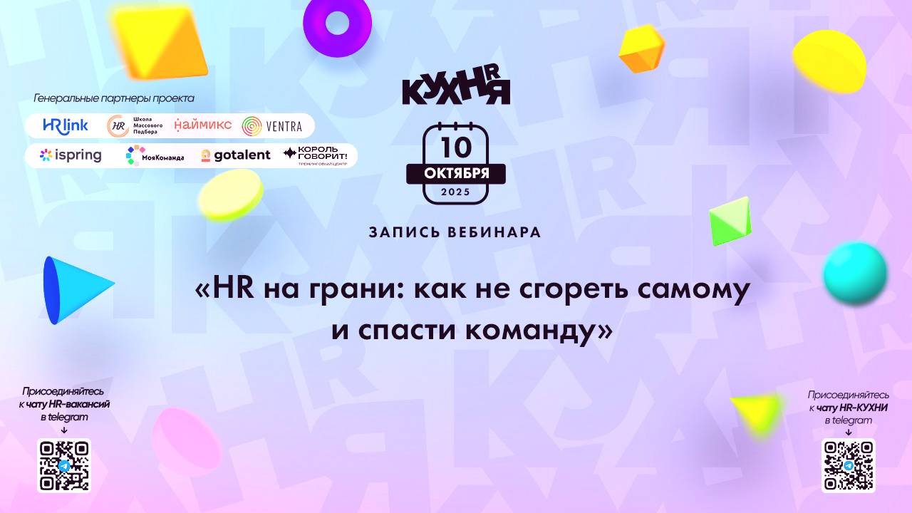 Присоединяйтесь к чатам и каналам HR-КУХНИ в телеграм: - Основной чат HR-КУХНИ в телеграм - https://t.me/+tYgAH0PgPQVkOWIy - Канал HR вакансий в телеграм - https://t.me/+CMNAN2u1hjo3M2Ri - Канал HR-EVENTS в телеграм - https://t.me/hr_kitchen - Канал HR JOURNAL в телеграм - https://t.me/hrkitchenjournal Полезные ссылки: - Каталог HR решений - https://hrkitchen.ru/exhibition - График конференций, бесплатных вебинаров, а также бесплатные курсы – https://hrkitchen.ru/ - Стать спикером HR-КУХНИ - https://hrkitchen.ru/speakers - Подписаться на полезную e-mail рассылку от HR-КУХНИ (новости, гайды, чек-листы, подарки от партнеров) - https://hrkitchen.ru/subscribe Реклама. ООО «ФРЭНДВОРК», ИНН: 7811628102 | ЕРИД: 2Vfnxx5EfbE