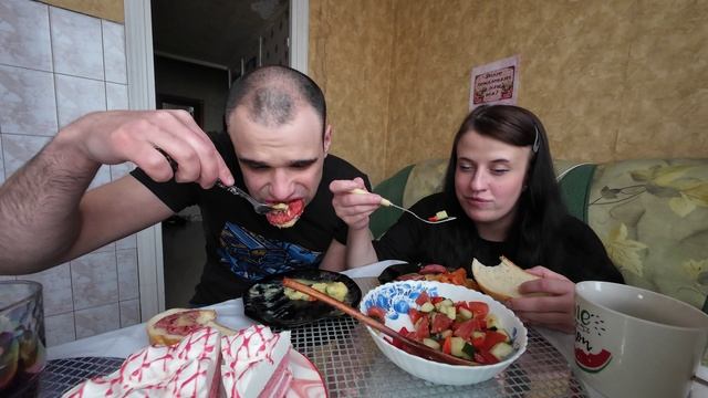 МУКБАНГ НАРЕЗКИ ЛУЧШЕЕ - ПЮРЕ С КОЛБАСОЙ / САЛАТ ОВОЩНОЙ / ТОРТ / MUKBANG АСМР 06. 04. 2025