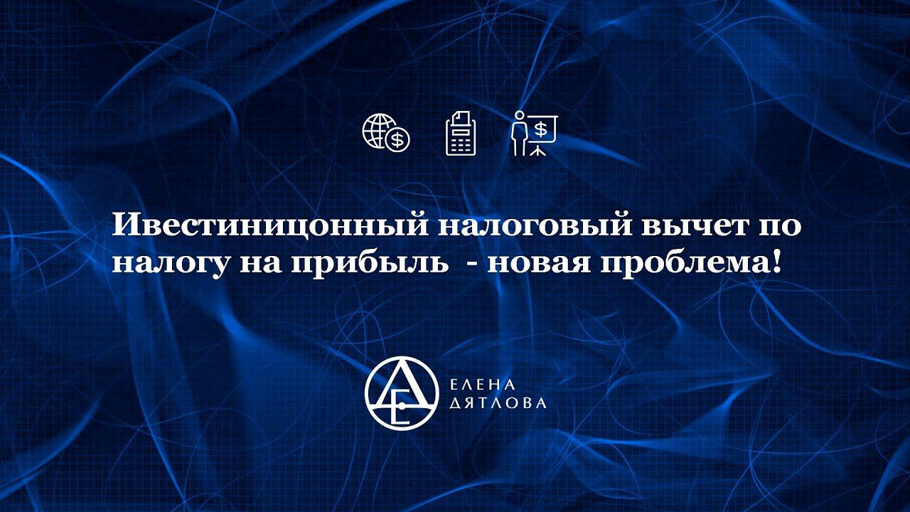 Применяете или планируете применять инвестиционный налоговый вычет по налогу на прибыль? Елена Дятлова обращает внимание на п. 9 ст. 286.1 НК РФ. Речь идет о правомерности переноса на следующий отчетный период суммы неиспользованного налогового вычета. Возможность переноса неиспользованного вычета регулируется законами субъектов. Мы говорим об отчетном периоде, а не налоговом периоде! Посмотрите ролик до конца, Е.М. Дятлова разъясняет нормы закона, высказывает точку зрения о перспективности применения инвестиционного налогового вычета. Елена Михайловна Дятлова является экспертом-практиком в решении сложных вопросов налогообложения с опытом работы более 23 лет. Еще больше полезной информации можно получить, принимая участия в вебинарах и семинарах Елены Дятловой. Расписание мероприятий, темы и условия участия на buchguru.vpi
