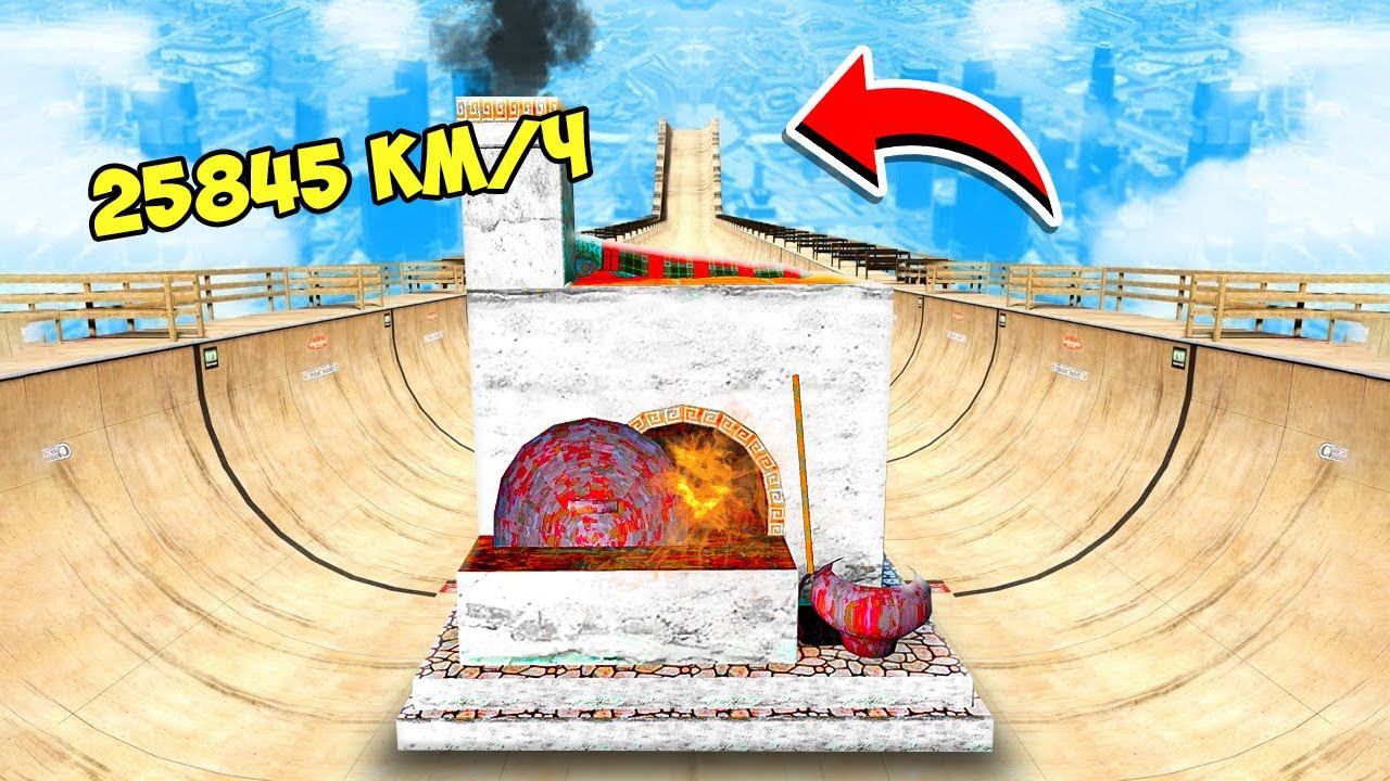 СПУСК БЕЗ ТОРМОЗОВ НА ПЕЧКЕ ЕМЕЛИ ПО ТРАМПЛИНУ ГТА 5 МОДЫ РАЙЛЮХА