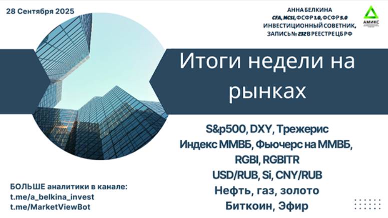 Итоги недели на рынках – 28.09.2025 #SP500 #DXY #RGBI #USDRUB #Brent #Gas #Gold #BTC #ETH