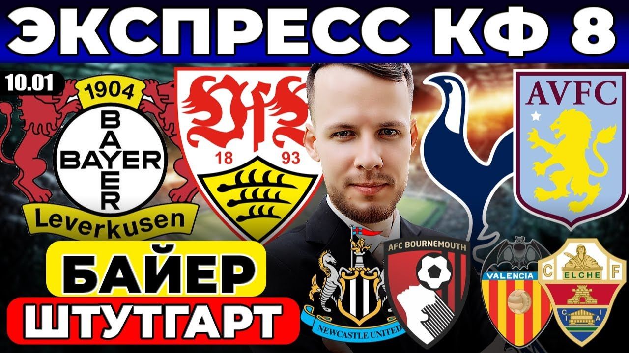 БАЙЕР - ШТУТГАРТ ПРОГНОЗ ТОТТЕНХЭМ - АСТОН ВИЛЛА ОБЗОР НЬЮКАСЛ - БОРНМУТ ПРОГНОЗ ВАЛЕНСИЯ - ЭЛЬЧЕ