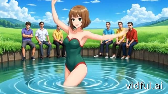 Красавица купается в реке перед успешными геймерами.