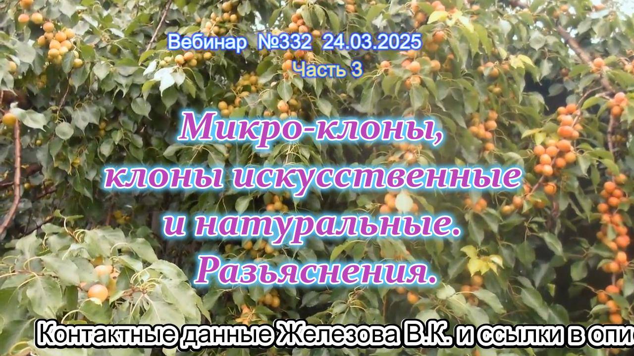 Вебинары Валерия Железова каждый понедельник в 16-00 МСК. Смотреть можно тут: https://start.bizon365.ru/room/lifeonearth/VJ и тут: https://rutube.ru/channel/39471854/videos/ Комментарии и вопросы можно оставлять в гостевой комнате Валерия Константиновича - http://sadsib.narod.ru/gb/ Телефон Железова В.К.: +7 960 776 86 72 Сайт Железова В.К.: https://sad-sib.ru/ Эл. Почта: jelezovsadsib@mail.ru - Группа в ОК - https://ok.ru/jelezovsadsib - Группа в ВК - https://vk.com/jelezovsad - https://zen.yandex.ru/id/5a4727b2168a915b10779daf Чат в WhatsApp: https://chat.whatsapp.com/CuIcxAnKRuh5alIKBuUqHz Чат в Телеграм: https://t.me/+IXSEa_e9wchkZjFi Садоводство по Железову на Youtube: https://www.youtube.com/channel/UCJqMclLm9z4lapERsEM6NPA Садоводство по Железову на Rutub: https://rutube.ru/channel/23786837/ Уральские саженцы от Галины Лотенковой: https://lotenkov.info/#rec537216072