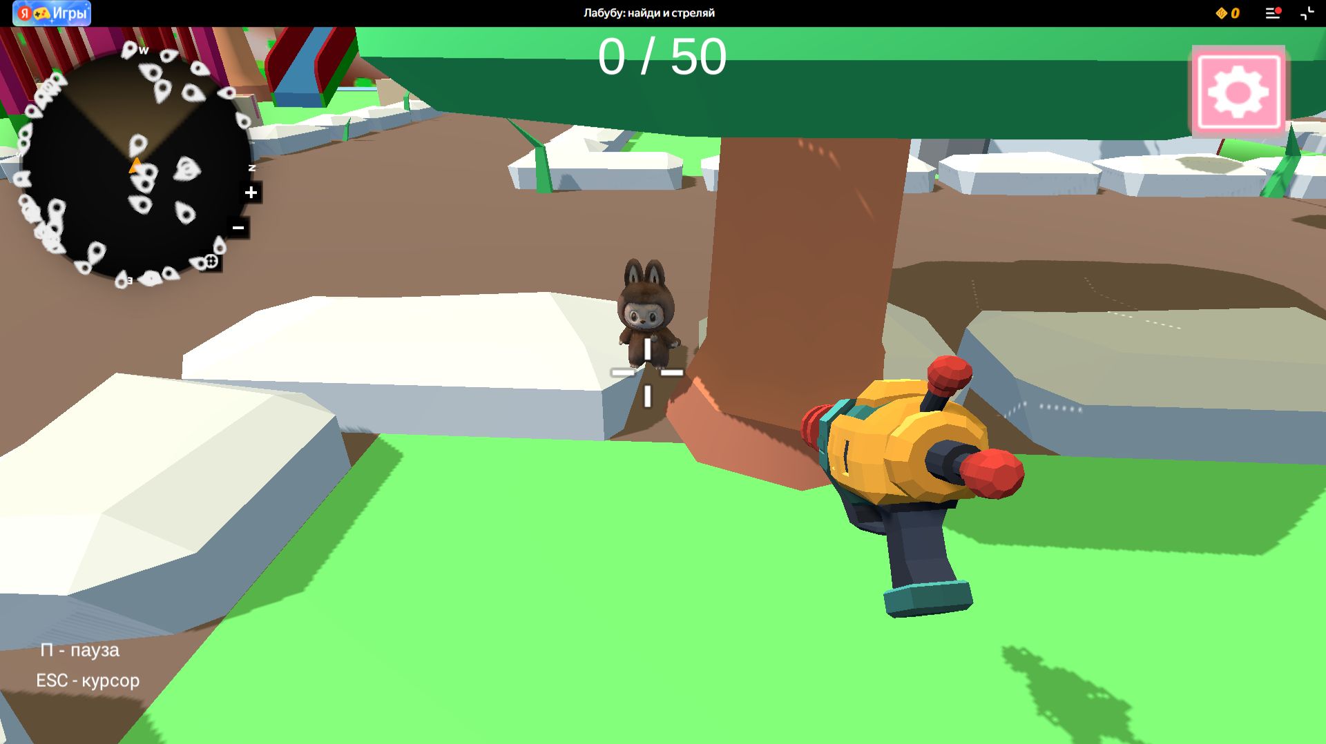 Находи с помощью мини - карты лабубу и стреляй. Некоторые спрятаны очень хорошо, поэтому придётся немного подумать.