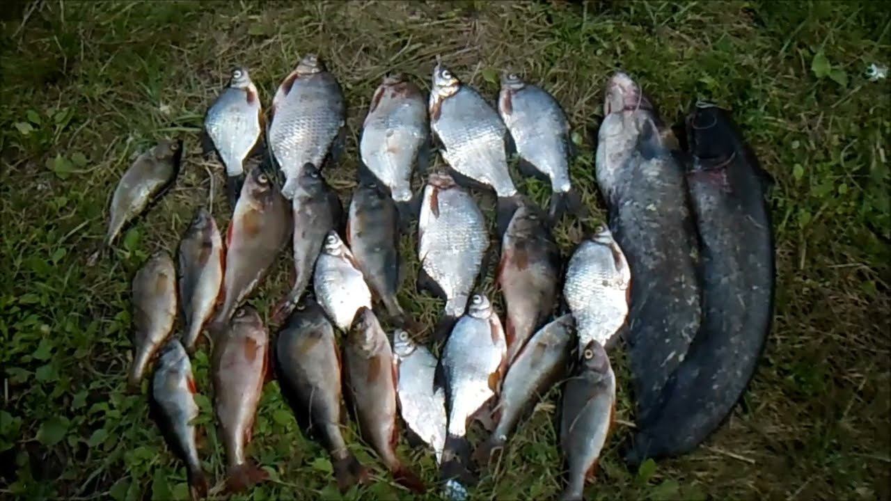 Рыбалка на донные удочки на пиявку с лодки на реке Припять.