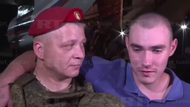 Кадры с возвращением домой российских срочников, которые были взяты в плен в августе в Курской области. Вчера на Родину вернулись 115 человек. Самолет сел в Москве.