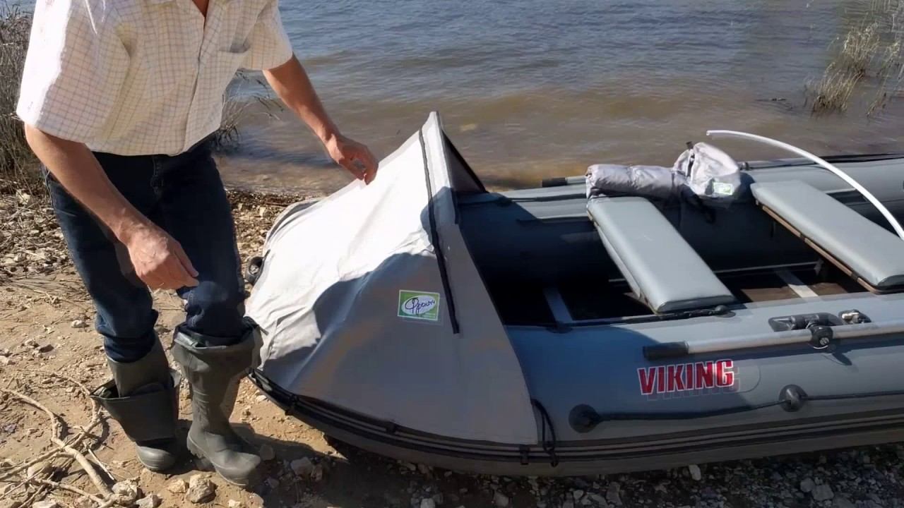 Установка серого носового тента «Фролыч» на лодку ПВХ