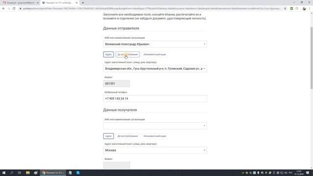 "Почта России" - посылка и мелкий пакет без допов и накруток. Всё оформление и оплата тарифа за пересылку с домашнего компьютера или смартфона. Автоматический расчет стоимости пересылки. Автоматическое определение индекса места доставки. Формирование всех документов нажатием одной кнопки. Остается распечатать и наклеить ярлыки на отправления. Как сделать бесплатную коробку для посылки https://youtu.be/E3BTNcyL0Vo #ПочтаРоссии #посылкаонлайн #трекномер