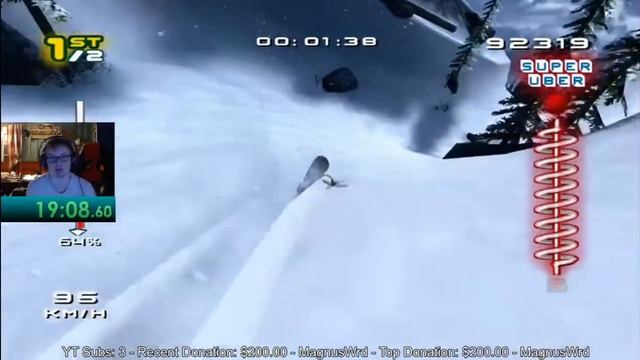 Back with a bang! Lots of improvements to be had still, but at least it cleans up a lot of major mistakes in the last run. Very unexpectedly, this happened during the long stream I was doing to celebrate SSX 3's 15th birthday! The timer is unevenly lined up with the facecam, my bad! Streamed live on Twitch (https://www.twitch.tv/daggyboi) and YouTube. Stop by sometime to watch me play live and talk to me, you'd be more than welcome!