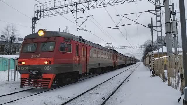 #ржд #поезд #электричка #эт2м #удельная #питер #поездароссии Электропоезд ЭТ2М-064 отправляется со станции Удельная в направлении на Выборг. Санкт-Петербург, февраль 2023 г.
