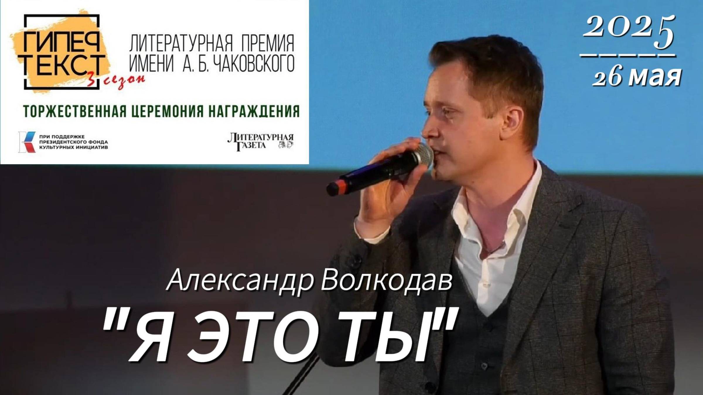 26 мая 2025 года в Центральном Доме Литераторов (г.Москва) на Церемонии награждения Всероссийской Общенациональной Литературной Премии "ГИПЕРТЕКСТ" (3 сезон), которую проводит "Литературная газета" при поддержке Президентского Фонда Культурных Инициатив, победитель юбилейного (десятого) сезона шоу "Голос" Александр Волкодав исполнил знаменитую, любимую многими песню Мурата Насырова "Я это ты", а зрители поддержали его выступление и активно подпевали! 😍👍 Спасибо организаторам Церемонии за чудесное, очень душевное мероприятие💖 Мы присоединяемся к поздравлениям лауреатов и финалистов! 👏👏👏 Отдельная благодарность всем за такой теплый прием Александра Волкодава🙏 #александрволкодав #volkodav #голос10 #волкодавалександр #гипертекст #концерт #муратнасыров #яэтоты #volkodavalex #хит #любимаяпесня Благодарим за видео Инну Кирсанову ❤️🌹