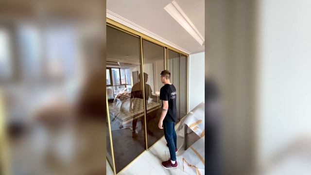Стеклянная раздвижная перегородка для зонирования спальни. Modello Design Рассчитать стоимость перегородки + 7 (927) 218-88-55 modello.design@yandex.ru modello-design.ru