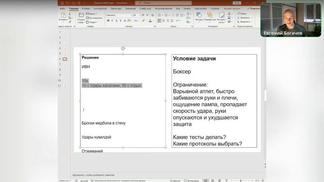 Задачка из курса _Выносливость_ - составить тренировку и тесты для боксера.
