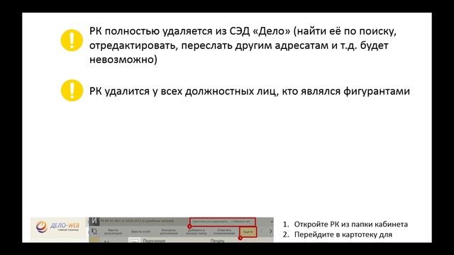 Удаление РК исходящего документа
