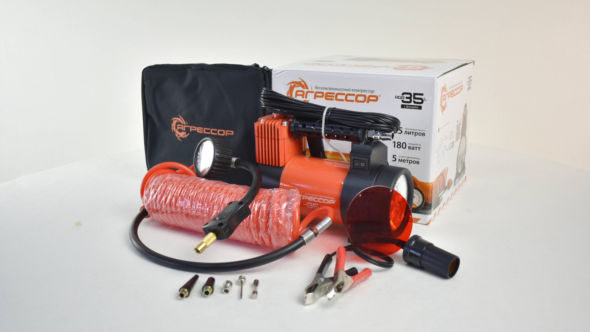 Компрессор "Агрессор AGR-35" автомобильный 35 л/мин. с фонарем Агрессор Заказать сельхоззапчасти: Agro-Shop.ru #компрессор #агрессор #автомобильный #фонарь #30л #рессивер #agr-30 #прикуриватель #манометр #аналоговый #поршневой #сельхоз #запчасти #агрошоп #agroshop #доставка #бесплатная #россия