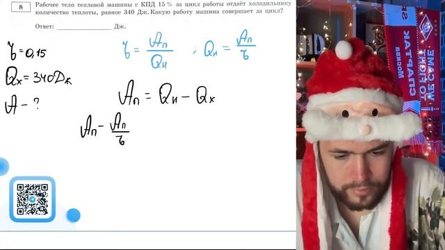 Рабочее тело тепловой машины с КПД 15% за цикл работы отдаёт холодильнику количество - №21370
