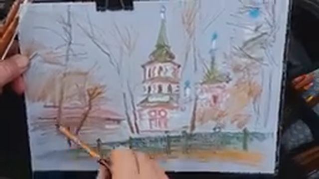 Городская зарисовка пастелью Пленэр Иркутск UrbanSketching 18.10.2022 (ускорено Х10)