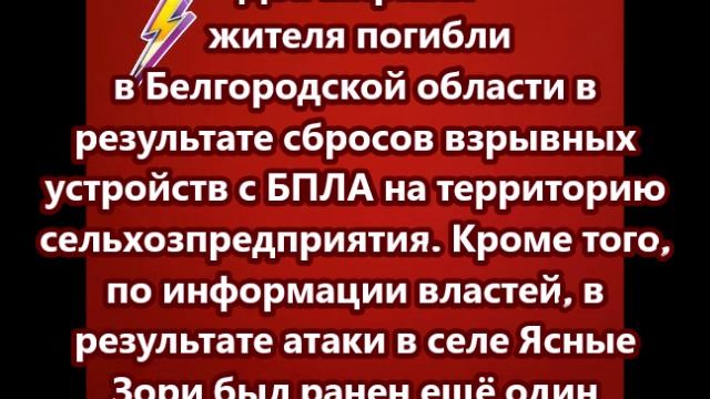 Два мирных жителя погибли в Белгородской области в результате сбросов взрывных устройств с БПЛА на территорию сельхозпредприятия