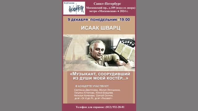 Песни Исаака Шварца. Санкт-Петербург. Клуб песни «Восток». 9 декабря 2024 г.