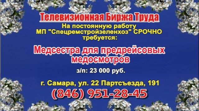 Вакансии и телефоны прямых работодателей в специализированной программе по трудоустройству "Телевизионная Биржа Труда" - г.САМАРА, г.ТОЛЬЯТТИ т/к РЕН-ТВ