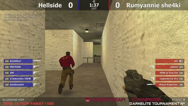 Полуфинал турнира по cs 1.6 от проекта ""DarkElite"" [Rumyannie she4ki -vs- Hellside] @ by kn1fe