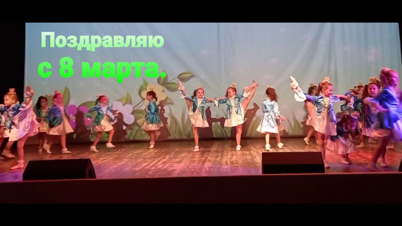 Поздравляю всех с праздником весны 8 марта. Предлагаю посмотреть поздравительный концерт к 8 марта школы танцев при городском культурном центре. Внучка участвует в качестве маленькой принцессы .