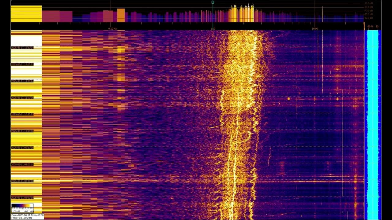 Геомагнитная активность обычно на частотах до 5 Гц и зависит от Солнечной активности. На более высоких частотах спектра могут присутствовать сигналы сверхдальней связи и др. Детали в этих плейлистах: EMF monitor https://youtube.com/playlist?list=PLiRg2YCbXcwn41BHqADKVBep_TgVq6XUN Очень Низкая Частота ~ Very Low Frequency https://youtube.com/playlist?list=PLiRg2YCbXcwnp5DxM4PnSs7k_Rnypaqek SIGNALS IN THE GROUND https://youtube.com/playlist?list=PLiRg2YCbXcwl6f3Bf5arHbGSOCNE5U71O поддержать канал: 8-999-654-93-44