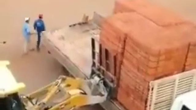 Неудачная разгрузка грузовика с кирпичами. #фейл #прикол #кирпичи