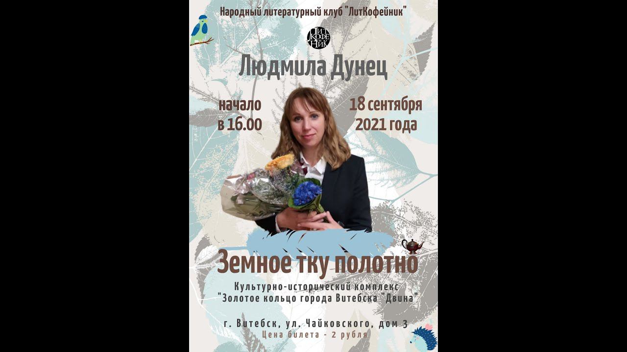 Людмила Дунец "Земное тку полотно". Открытое заседание народного литературного клуба "ЛитКофейник", Культурно-исторический комплекс "Золотое кольцо города Витебска "Двина", 18 сентября 2021 года. Ведущий - Олег Сешко.