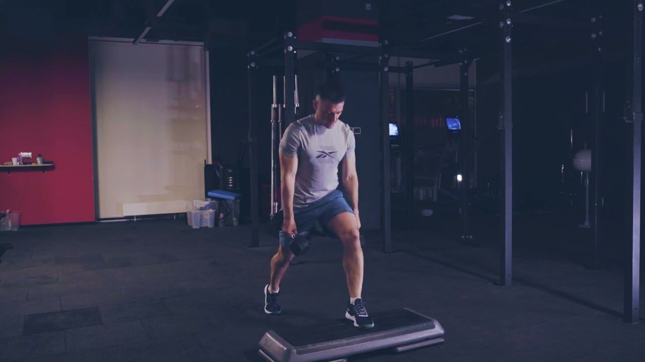 Сплит приседания с возвышенности с двумя гантелями/ Elevated dual DB split squat