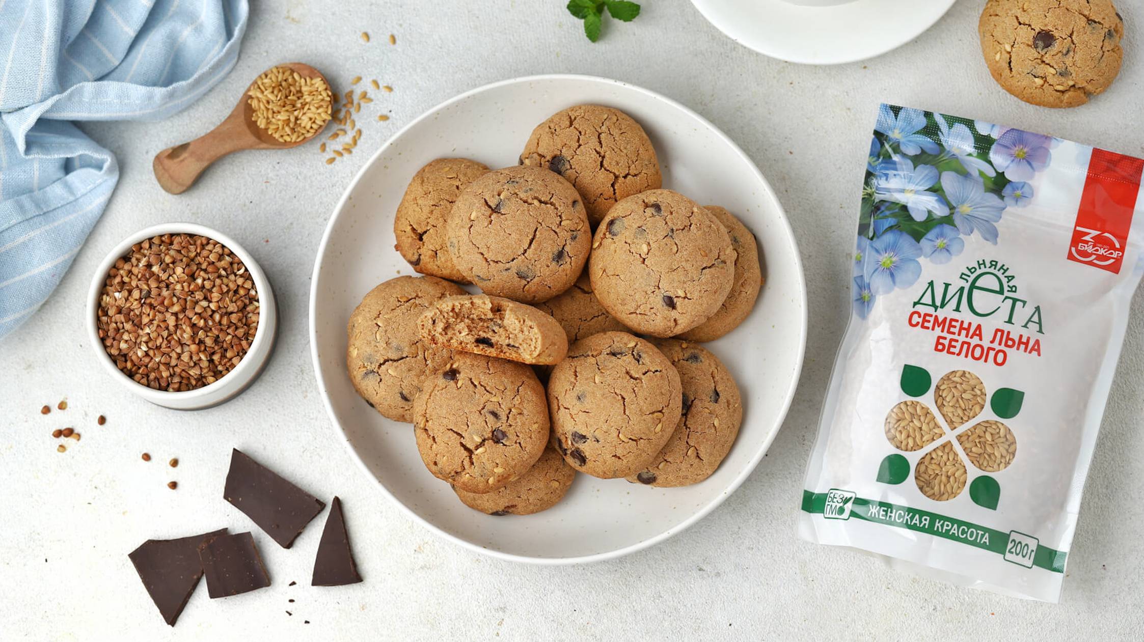Гречневое печенье с семенами льна "Биокор" и шоколадом