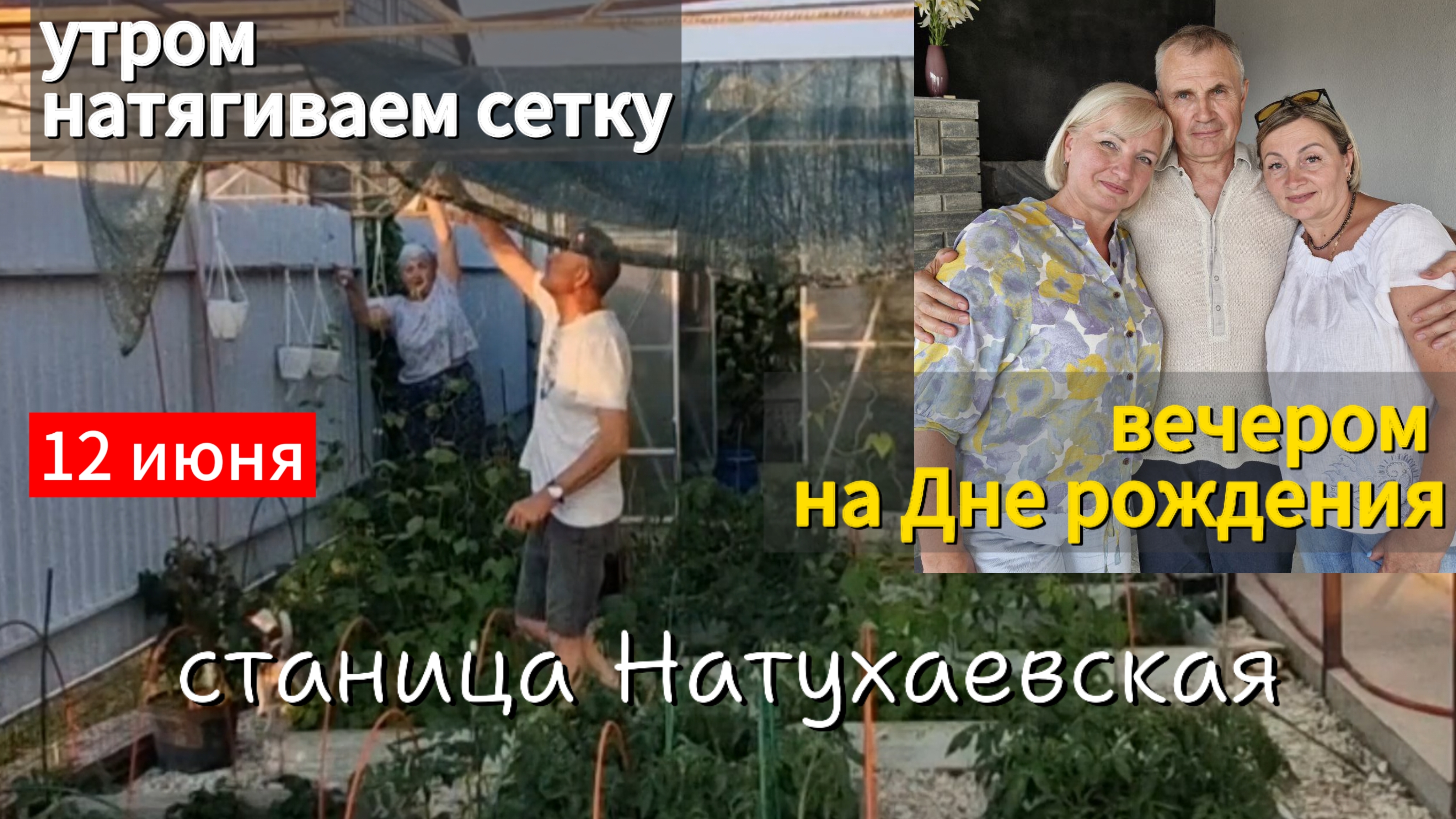 День станичников. Натягиваем сетку над огородом.День России в станице.Идем на день рождения.