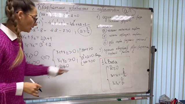 В этом видео я разбираю решение квадратного уравнения с параметром аналитическим способом . Уравнение само по себе несложное, но его дискриминант не является полным квадратом, поэтому если мы планировали бы находить корни уравнения в явном виде, то это были бы иррациональные громоздкие конструкции. Избежать этой участи поможет теорема Виета! Посмотрите на сколько разных вопросов мы можем дать ответ быстро и без явного нахождения корней благодаря этой теоремы Виета. Решайте, тренируйтесь! И помните, что в основе более сложных ЕГЭшных задач лежат вот такие базовые приемы!