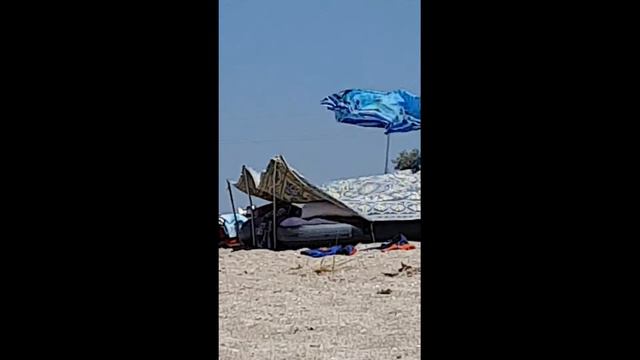 Поставить палатку или тент на северной косе Беляус совсем не просто! Сильный ветер так и норовит все сорвать и унести!