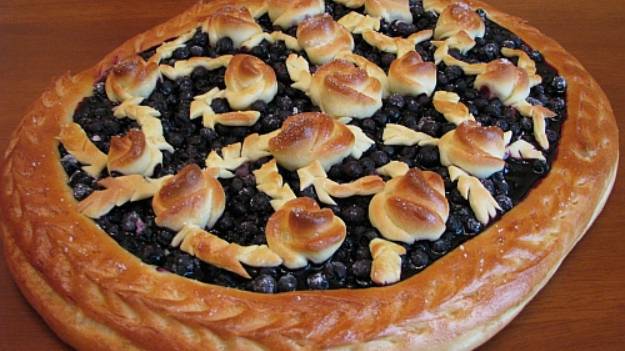 Открытый дрожжевой пирог с черникой