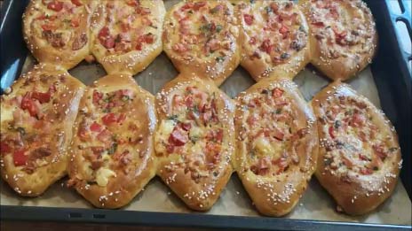 Булочки с колбасой и овощами Закусочные булочки