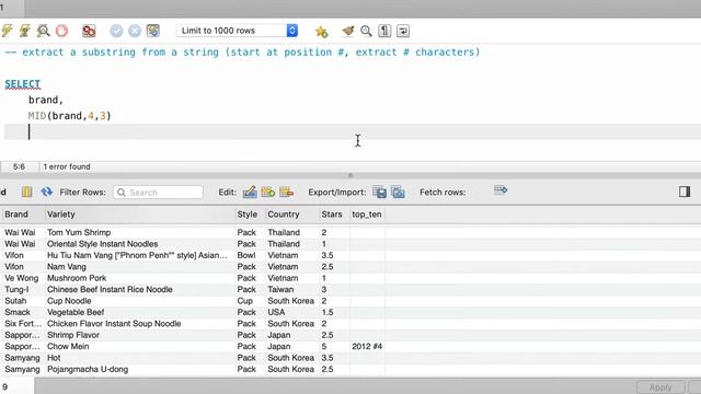 MySQL Practice - Extract A Substring: MID()