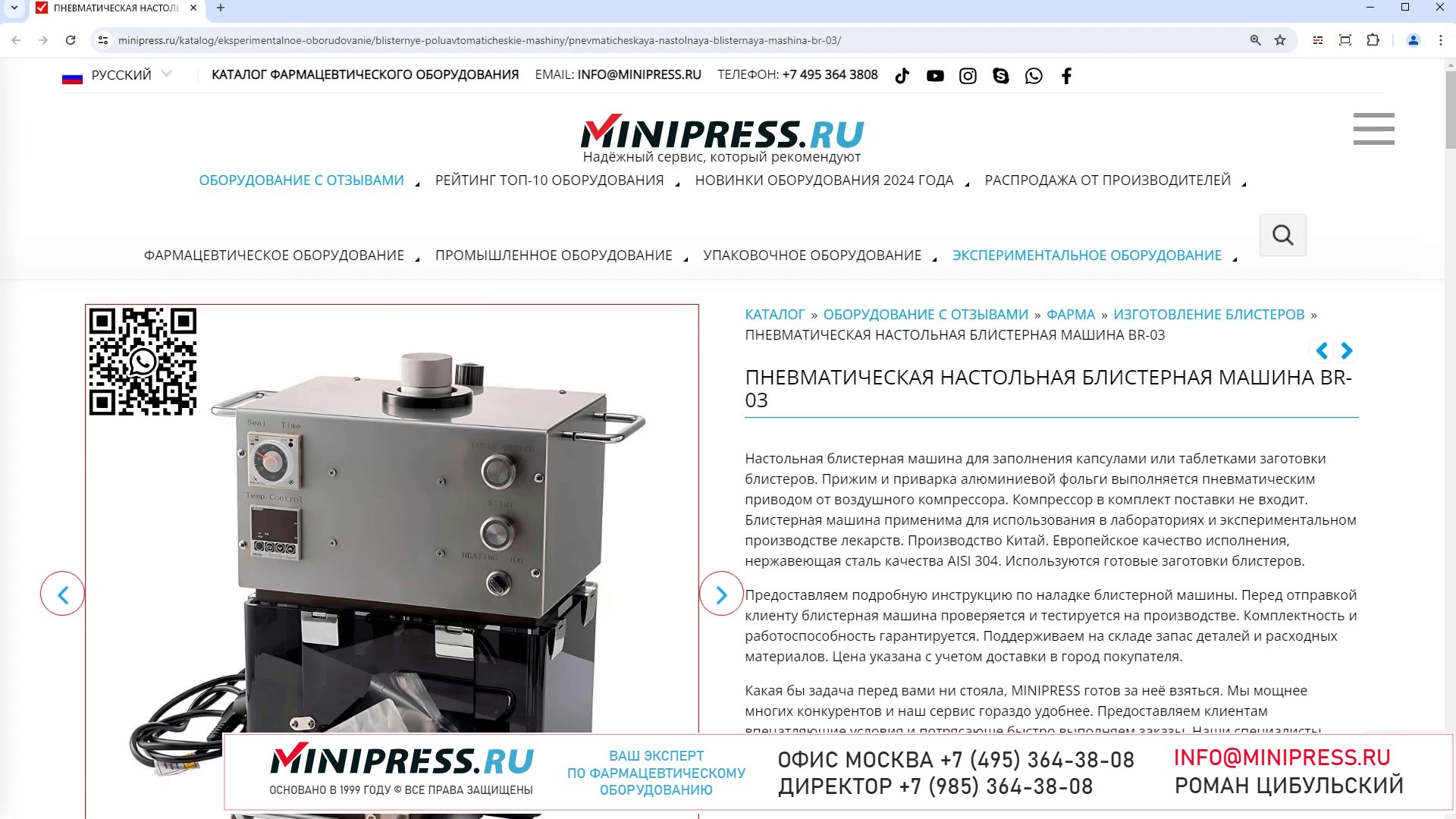 Компания MINIPRESS.RU занимается АВТОМАТИЧЕСКИМИ ФАСОВОЧНЫМИ МАШИНАМИ. Фасовка осуществляется в пластиковые банки, тубы, блистеры. Счетчики таблеток, капсул, мелких предметов для упаковки по количеству и весу. Компания Романа Цибульского MINIPRESS.RU занимается поставкой большого ассортимента фармацевтического оборудования из Китая, Кореи, Индии, Европы и других стран. Мы выполняем работы по поиску, подбору, закупке, доставке, и таможенной очистке оборудования с доставкой в любой город России и стран СНГ. Основатель и ведущий специалист компании - Роман Цибульский. Компания MINIPRESS.RU (зарегистрированный товарный знак) основана в 2000 году. Онлайн каталог оборудования MINIPRESS.RU ежедневно посещают несколько тысяч человек. Мы развиваем крупные каналы в социальных сетях, посвященные тематике фармацевтического оборудования. Вы можете посмотреть видео ролики об оборудовании, которым мы занимаемся. Фактически у нас самый большой в России многоязычный каталог фармацевтического оборудования с фотографиями, описаниями, и что более важно с ценами и видео демонстрацией оборудования в работе. Подбор оборудования и консультации ведет сам владелец компании - Роман Цибульский. Компания имеет огромный опыт в работе с различным оборудованием, технологиями. Помогаем клиентам выбрать модель фармацевтического оборудования, которое сможет решить поставленную задачу. Наши специалисты помогают рекомендациями в решении проблем по эксплуатации оборудования. Наша компания имеет офис в г.Шанхай и несколько менеджеров, которые помогают в работе с китайскими поставщиками. Мы долго сотрудничаем и дружим с этими специалистами. Китайские поставщики ценят нас как постоянных партнеров. Роман Цибульский Директор компании Минипресс Поставка фармацевтического оборудования в Россию Пишите: info@minipress.ru Gmail: boss.minipress@gmail.com Офис в Москве +7(495)364-38-08 Мобильный +7(985)364-38-08 (WhatsApp) Каталог оборудования https://www.Minipress.ru/katalog/ МИНИПРЕСС.РУ В СОЦИАЛЬНЫХ СЕТЯХ FB https://facebook.com/roman.tsibulsky YOUTUBE https://www.youtube.com/@farmacevticheskoe_oborudovanie INSTAGRAM https://www.instagram.com/farmacevticheskoe_oborudovanie/ #пробка #корпорация #датер #порошок #маркировка #покупка #технология #технолог #менеджмент #механизм