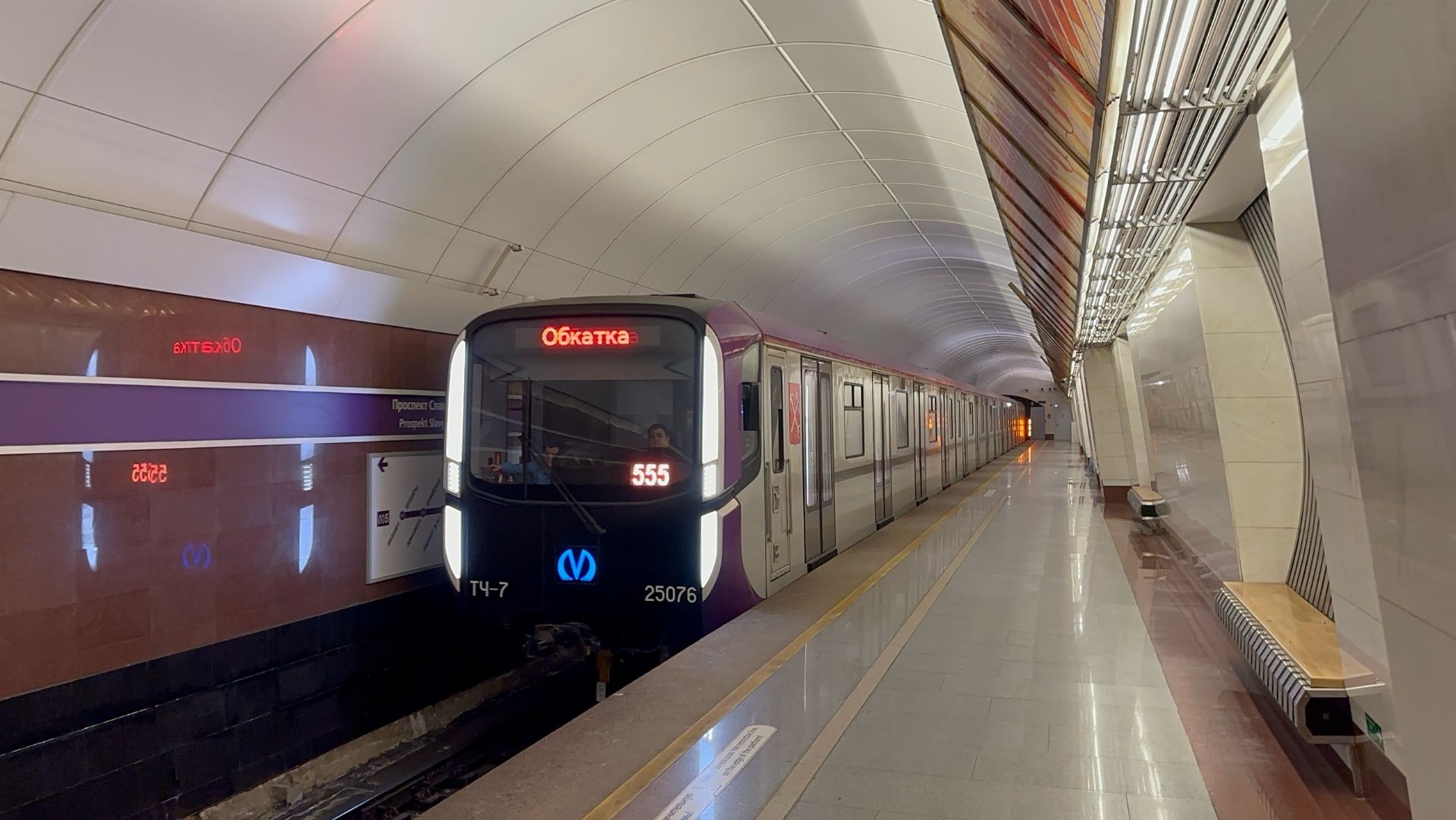 Метропоезд «Балтиец» (81-725/726/727.2) (Приписан к электродепо ТЧ-7 Южное Петербургского метрополитена), маршрут №555 - обкатка. Ст.м.Проспект Славы Фрунзенско-Приморской (5) линии Петербургского метрополитена.. Российская Федерация, Санкт-Петербург. 15.II.2026 Группа в VКонтакте: https://vk.com/transporttamer YouTube-канал: https://youtube.com/@transporttamer Дзен-канал: https://dzen.ru/transportinhistory Rutube-канал: https://rutube.ru/channel/26740029/ Telegram-канал: https://t.me/transporttamer